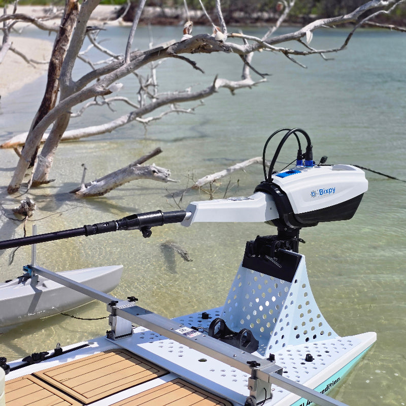 Troll in total comfort with this adjustable tiller extension handle, designed to give you better balance, trim, and control while operating your outboard motor. Whether you're sitting forward of the motor or positioned off-center, the handle's 37" to 51" extension range and flexible U-joint steering make navigating effortless. Built with marine-grade aluminum and stainless steel hardware, this handle clamps securely to your Bixpy N-3 Tiller Handle for intuitive throttle and steering control—no tools required.